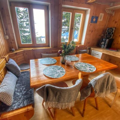 The Preskar Museum is located in the heart of the shepherds’ settlement on Velika Planina and is open daily during the grazing season. Its exterior immediately draws attention – a small, grey shepherd’s hut built from wood and stone, surrounded by a stone fence. A cross atop the roof once served to protect shepherds from dangers, storms, lightning, and evil forces.