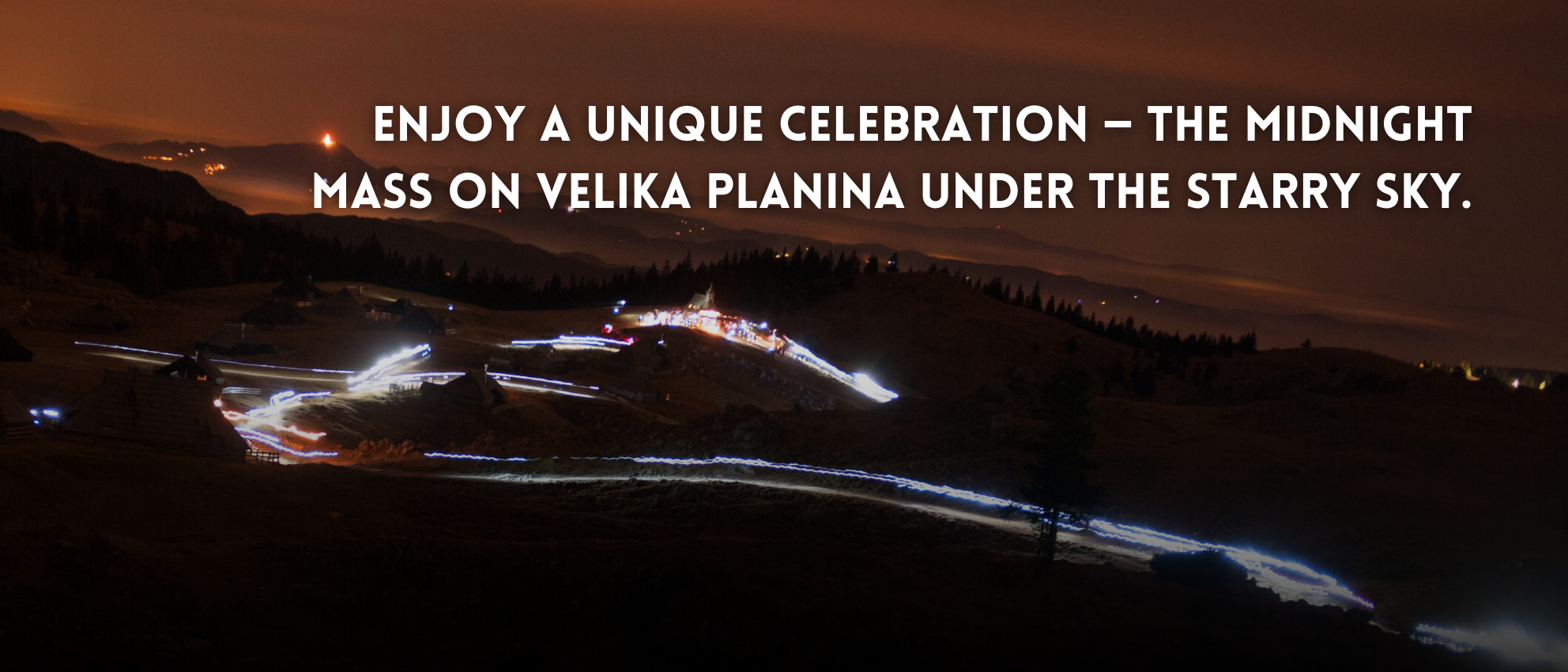 Vodeni pohod k polnočnici na Veliko planino z baklami Tradicionalna polnočnica na Veliki planini – čarobno božično doživetje Doživite najlepšo božično tradicijo na Veliki planini – polnočnico v idiličnem pastirskem naselju. Podajte se z nami…