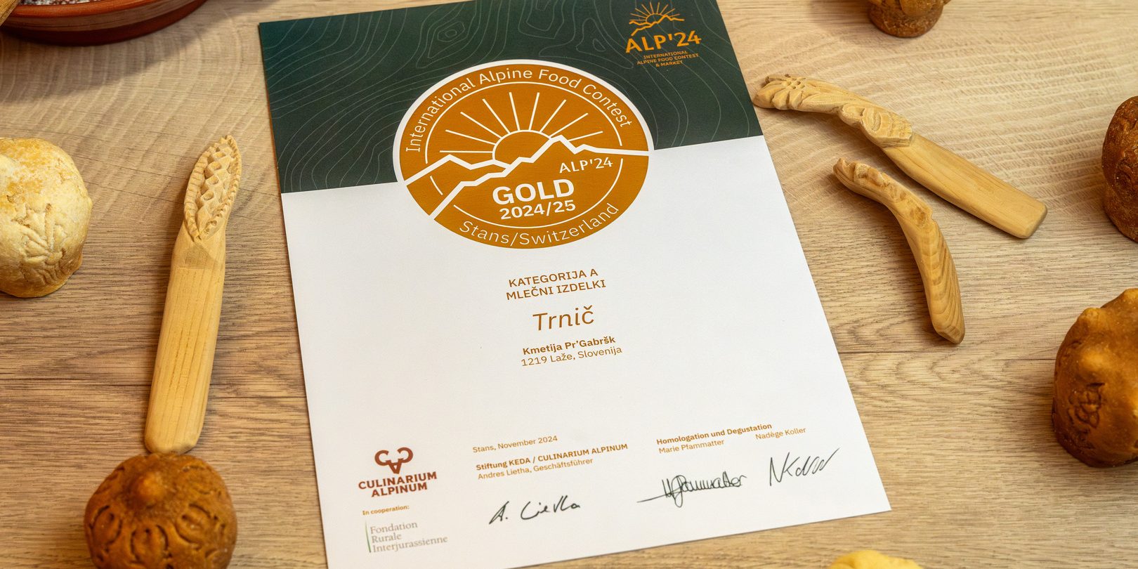 Strokovna žirija je med 337 izdelki, ki jih je prijavilo več kot 100 proizvajalcev iz alpskih držav Francije, Italije, Avstrije, Slovenije in Švice, z zlatimi, srebrnimi in bronastimi priznanji nagradila 95 izjemnih regionalnih izdelkov v petih kategorijah. Zlato medaljo je prejel tudi unikatni, edinstveni velikoplaninski sir trnič, ki ga v Kamniku oziroma na Veliki planini po tradicionalnem postopku in receptu izdeluje sirarka Sonja Kropivšek iz kmetije Pr’ Gabršk v Češnjicah v Tuhinju. Vse mleko pridelajo izključno doma, uporabijo pa ga za izdelavno raznovrstnih mlečnih izdelkov, med katere sodijo različne vrste sirov, kot sta mehki sir in sir za žar, navadna in albuminska skuta, jogurti, … prav tako pa ponujajo tudi domače surovo mleko. Sonja sodi med mlajše izdelovalke trniča. Postopka izdelave tega prav posebnega sira, značilnega za Veliko planino, se je učila pri pokojni Rezki Mali, ki je kot edina vrsto let ohranjala to etnološko izročilo. Z izdelavo trniča se je začela ukvarjati pred 11 leti, in sicer na pobudo Zavoda za turizem, šport (in kulturo) Kamnik. Takrat je začela nastajati kulinarična znamka Okusi Kamnika in trnič je bil eden izmed jedi, ki je bil skoraj pozabljen.