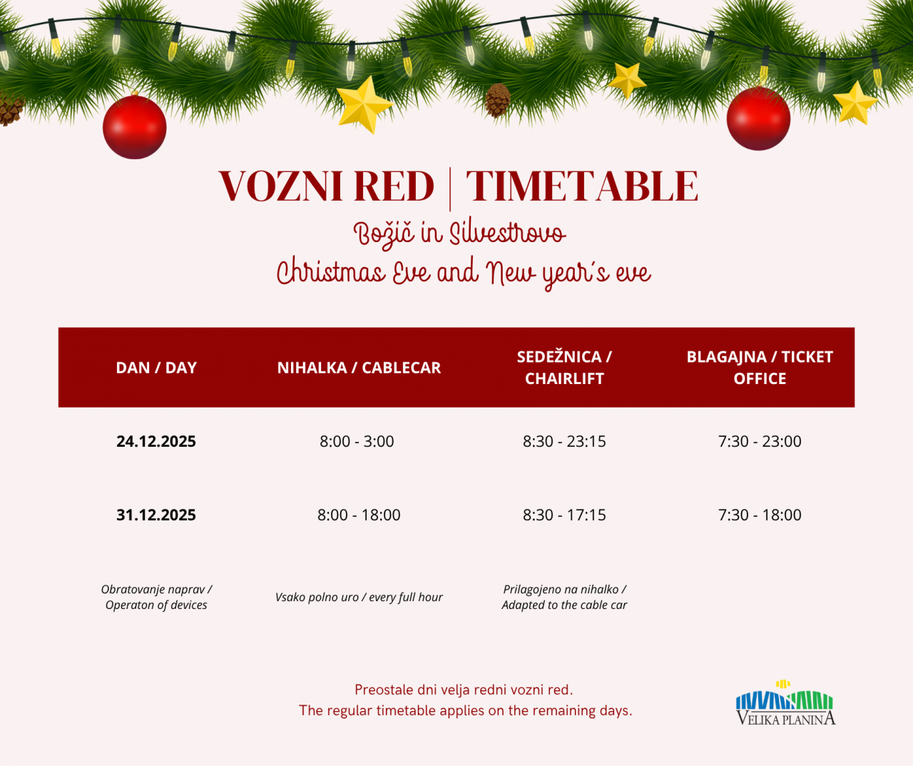 Vozni red od 25.12.2025 do 4.1.2025: