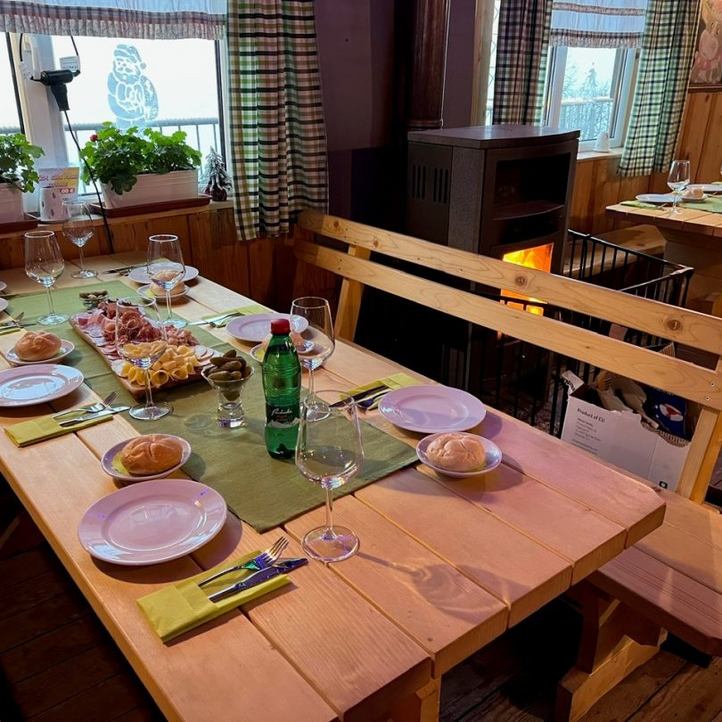 Located right next to the upper cable car station, Skodla Lodging House welcomes you with its charming alpine style. We serve a wide selection of hot and cold beverages, including homemade lemonades, iced teas, mulled wine, gin and tonic, Aperol Spritz, Bombardino, juices, beers, and various spirits. During the busier months, you can also enjoy delicious snacks such as pizzas and strudels.