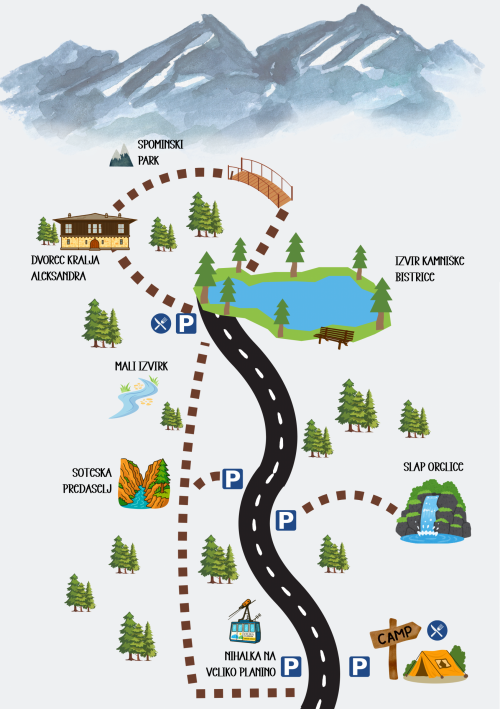 Dvorec se nahaja le nekaj sto metrov od izvira Kamniške Bistrice. Postavljen je bil po naročilu tedanjega kraljevega dvora, njegovo prvotno ime pa je Lovska koča kralja Aleksandra. Načrte zanj je leta 1932 izdelal arhitekt Jože Plečnik, ki je s preprosto zunanjostjo ter bolj bogato notranjostjo dvorec želel vključiti v naravno okolje samega kraja. Dvorec je za ogled notranjosti zaprt, lahko pa si ga ogledate od zunaj.